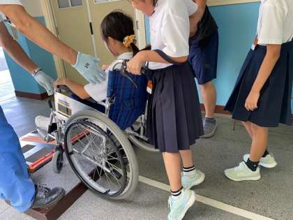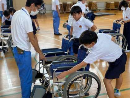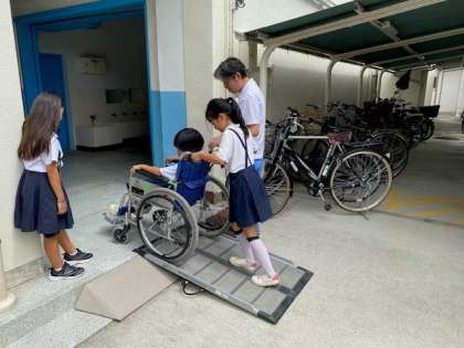 【4年】車いす体験 公開日 2024/09/19 更新日 2024/09/19 4年生 平野区のリハビリテーションセンターの方々が学校に来て出前授業をしていただきました。 子どもたちは基本的な操作方法を教えてもらって、「自分で乗ってみる体験」「車いすを介助して押す体験」をしました。たった数センチの段差を乗り越えるのにとても苦労することや、下り坂で座っている人が感じる怖さなど、実際に体験しないとわからないことがたくさんありました。感想の交流を通して、学びを深めてほしいと思います。 いいね(0)
