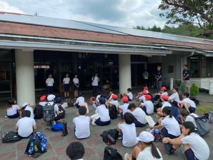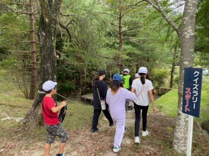 ?お昼ご飯の後に入所式を行い、明日の天気が心配なので、2日目に行う予定であったクイズラリーを昼からの活動に変更しました。