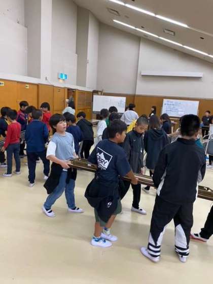 お昼ご飯をいただいた後、焼き板工作の作業スペースを自分たちで作るところから始めています。