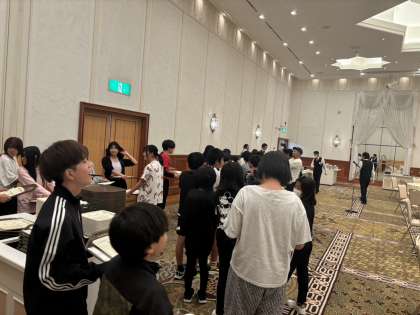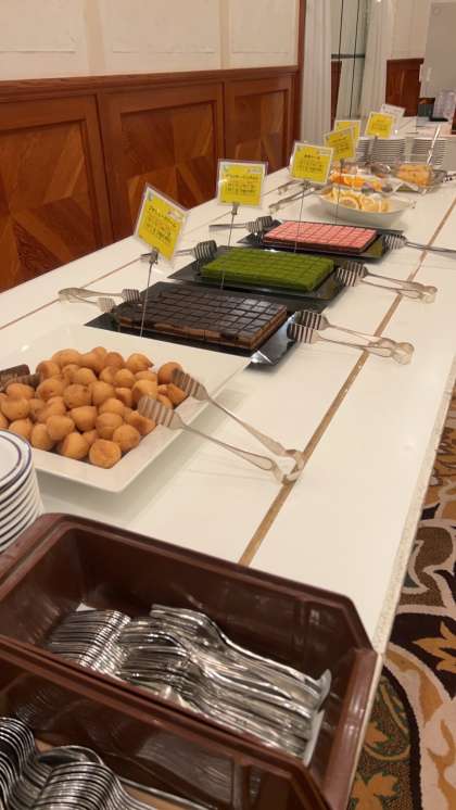避難訓練の後、お待ちかねの夕食タイムです。ビュッフェ形式ですごく豪華です!沢山いただきましょう。