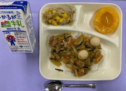 【給食 10月23日(水)】 公開日 2024/10/24 更新日 2024/10/24 学校日記 中華丼・牛乳 もやしとコーンのごまいため・黄桃 中華丼は卵アレルギーのある児童には、うずら卵を入れずに除去献立として提供しています。具材が豊富でどちらもおいしくいただけます。 いいね(0)
