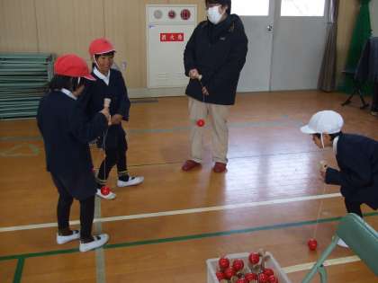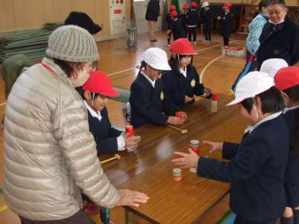【1年 昔あそび】 公開日 2025/02/25 更新日 2025/02/25 学校日記 2月21日(金)に、1年生が、地域の皆さんのお力を借りて、色々な昔ながらの遊びを教えていただいて体験する「昔あそび」の会を行いました。初めてさわる道具に戸惑いつつ、優しく教えていただいて、時間の終わりごろには上手に楽しんでいる子もたくさんいました。「もっとやりたい〜」と先生にお願いしている子もいました! いいね(0)