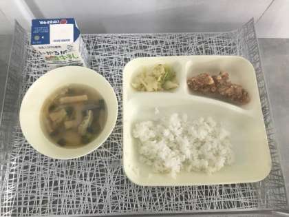 鶏肉のたつたあげ、五目汁、キャベツの梅風味です。