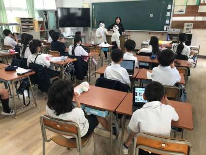 4年生の朝の会と2年生の生活科と3年生の図工の学習のようすです。