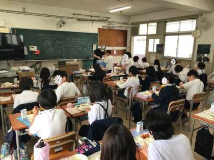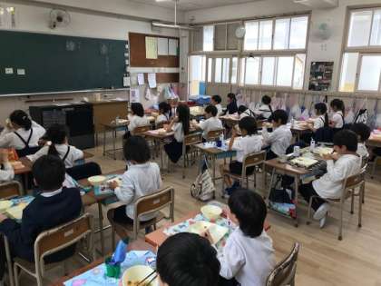 5年生と2年生の給食のようすです。