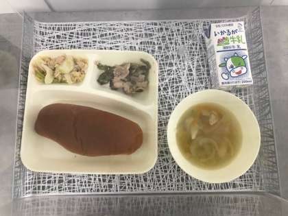 今日の給食 公開日 2025/04/23 更新日 2025/04/23 学校日記 豚肉のガーリック焼き、スープ、ツナとキャベツのソテーです。 スープには、鶏肉、じゃがいも、たまねぎ、にんじん、パセリが入っていました。 いいね(0)