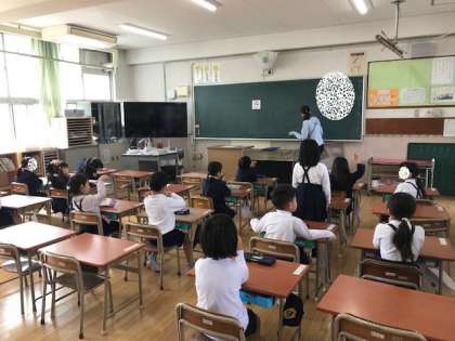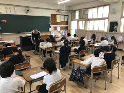 2年生の漢字と1年生のひらがなの学習のようすです。