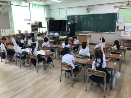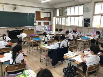 1年生のひらがなと2年生の国語と5年生の家庭科の学習のようすです。