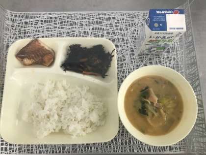 今日の給食 公開日 2025/05/23 更新日 2025/05/23 学校日記 あかうおのしょうゆだれかけ、みそ汁、ひじきのいため煮です。ひじきは、こんぶやわかめと同じ海藻の仲間です。骨や歯を強くするカルシウムや、お腹の調子を整える食物繊維がたくさん含まれています。 給食のようすは、1年生と2年生です。 いいね(0)