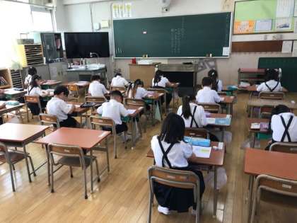 5年生と1年生の算数と2年生の国語の学習のようすです。