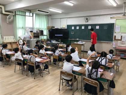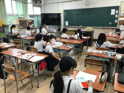 4年生の図工と1年生のカタカナの学習のようすです。