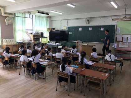 2年生の学級活動と1年生のカタカナの学習のようすです。