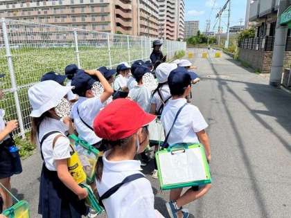 2年生の町たんけんのようすです。