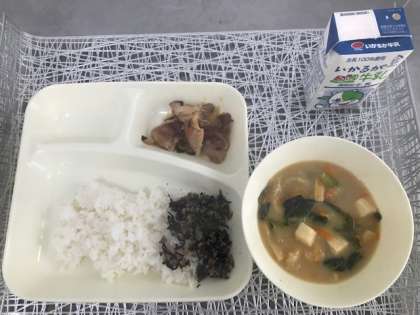 今日の給食 公開日 2025/06/19 更新日 2025/06/19 学校日記 鶏肉の甘辛焼き、みそ汁、魚ひじきそぼろです。 魚ひじきそぼろは、白身魚のスケソウダラのミンチを使っています。 6年生の給食のようすです。 いいね(0)