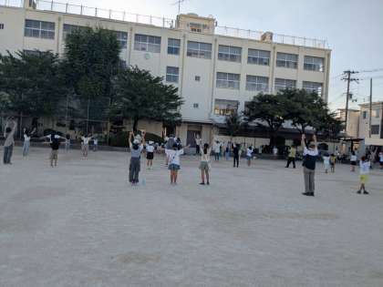 8/19(火)〜25(月)毎朝7時からPTA主催のラジオ体操が瓜破西小学校運動場で行われました。