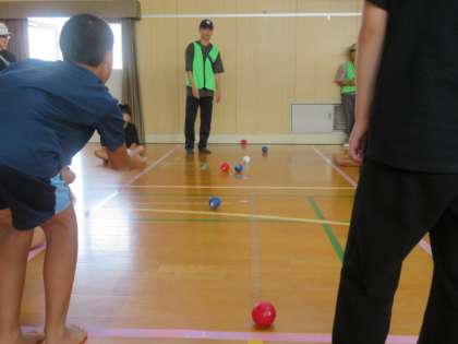 ビデオ上映の後は、ボッチャ体験やじゃんけんゲームが行われました。