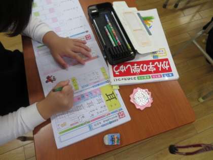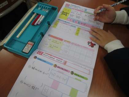 漢字ドリルで「口」と「耳」の漢字を学習しました。