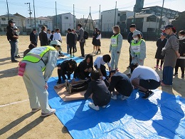 合同防災訓練 公開日 2025/11/08 更新日 2025/11/08 6年生 本日、瓜破西中学校で、瓜破西地区合同防災訓練が行われました。本校からは6年生が参加しました。災害に備えて、救護・簡易担架搬送訓練、バケツリレー、水消火訓練など、たくさんの体験をさせていただきました。児童は友達と協力しながらそれぞれの活動に一生懸命取り組んでいました。 子どもたちにこのような貴重な体験の場を作っていただいた地域の皆様、ありがとうございました。 いいね(0)