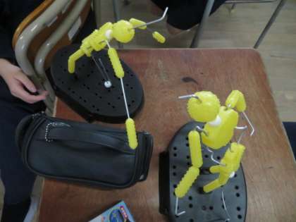 骨組みを作って、その上から粘土をつけて体の動きを表現します。