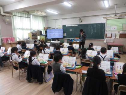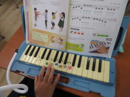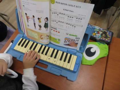 鍵盤ハーモニカで音の長さを工夫して吹きました。
