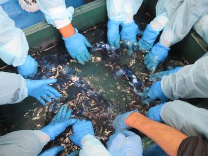 染まった布を水でよく洗って、輪ゴムを外して広げてみました。
