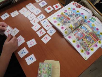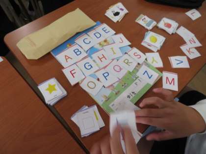 アルファベットのカードを順番に並べて、みんなでABCの歌を歌いました。