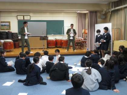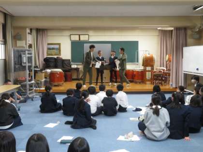 6年 出前授業 公開日 2025/11/27 更新日 2025/11/27 6年生 吉本興業さんのプロの芸人さんから話し方などのアドバイスをいただいて、みんなの前で漫才を披露しました。おかげで発表会は大いに盛り上がりました。 いいね(0)