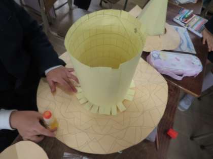 12/1 2年すてきなぼうしをつくろう 公開日 2025/12/01 更新日 2025/12/01 2年生 2年生の図工です。 シルクハットかさんかくぼうしを選んで作っています。 飾りつけをしたらできあがりです。 作品展で展示しますので楽しみにしてください。 いいね(0)