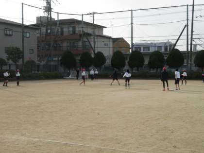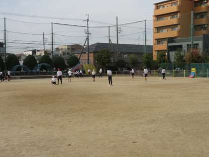 野球型のゲームです。男女別のチームでゲームを楽しみました。
