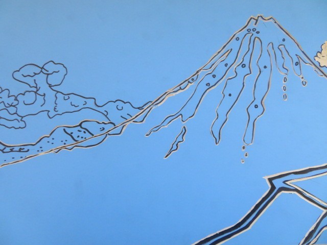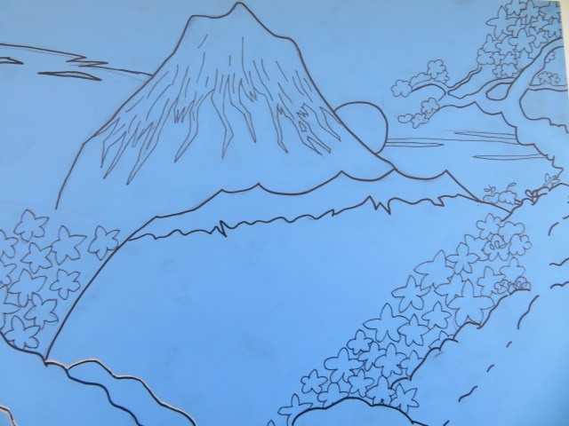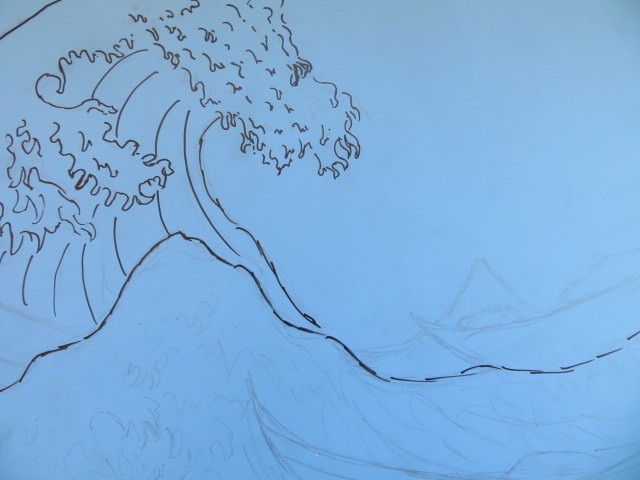 風景の浮世絵を題材に下書きをして、彫刻刀で彫っていきました。