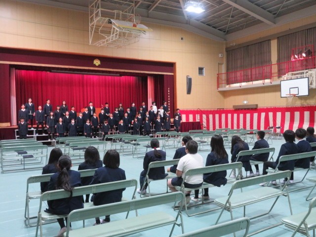 今日は、5年生に見てもらいながら卒業式の練習をしました。