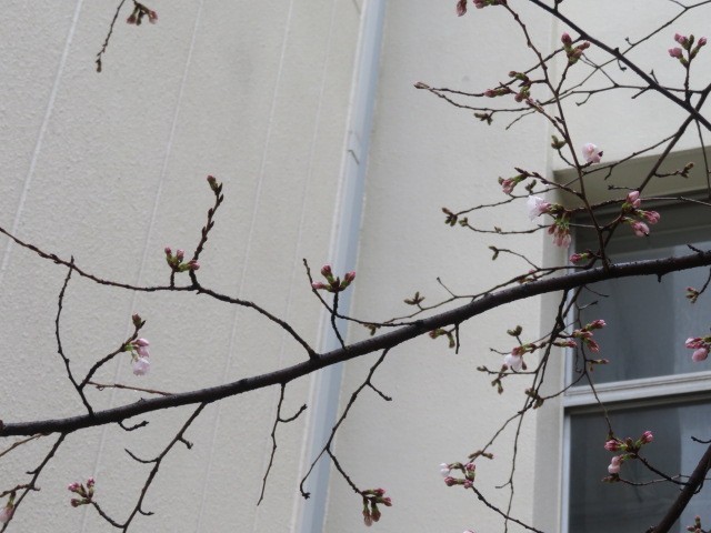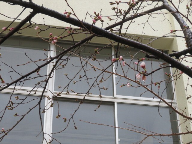 中庭の桜が咲きました。