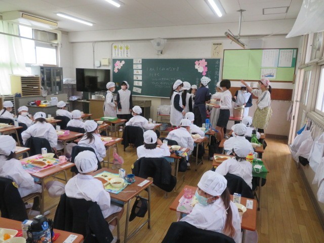 1年生は6年生に配膳の手伝いをしてもらいました。