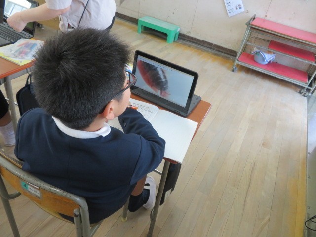 教室に戻ると、撮影した写真をお互いに見せ合いながら分かったことを交流したり、