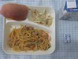 ウインナーときのこの和風スパゲッティ、きざみのり、焼きツナキャベツ、固形チーズ...