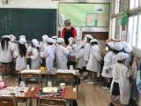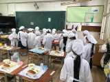 1年生の給食の準備のようすです。 自分たちで給食の準備をしています。