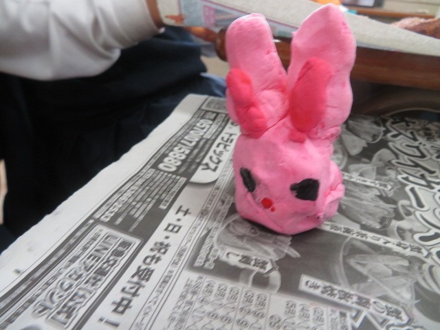 好きなものを磁石にしています。紙粘土の中に磁石が入っています。うさぎ、パン、ドー...