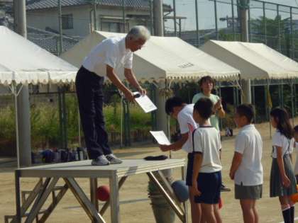 9月16日、火曜日ですが週始めの児童朝会です。今回は、4年生の澤井さんに大阪市内の図画工作展入選の賞状を伝達し、プール水泳で技術が進級した児童への認定証を各学年の代表の児童に渡しました。学校では、様々な場面で、たくさんの子どもたちの頑張りに出合うことができますが、こうして、みんなの前で紹介することができると、たくさんの拍手がおきて、とてもうれしいです。そういう頑張りを、これからもこのHPの役割として最大限に伝えていきたいと思います。