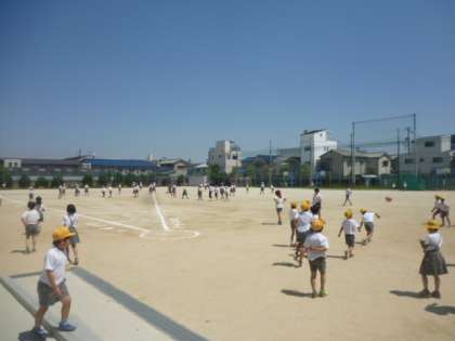 暑い日が続いていますが、休み時間は運動場で元気よく遊んでいます。水分をこまめにとるようにしましょう!