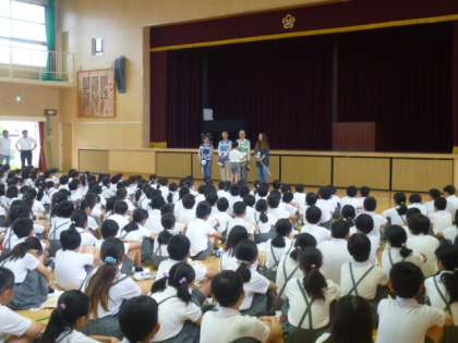 6月10日(月)朝会時に、毎朝子どもたちの登校を見守ってくださっている見守り隊の方々との顔合わせを行いました。見守り隊の方の紹介があり、最後に代表委員の児童があいさつをしました。これからも、安全に気をつけて元気に登校しましょう!