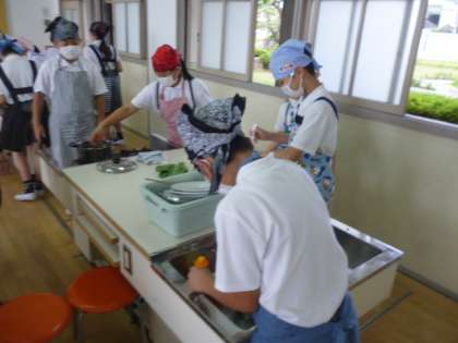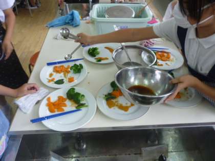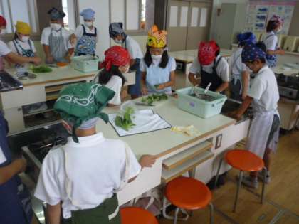 5年生が調理実習で、「カラフル温野菜」を作っていました。グループで協力して、野菜を切り、茹でて、きれいに盛り付けもすることができました。ドレッシングも作製しました。美味しかったかな?