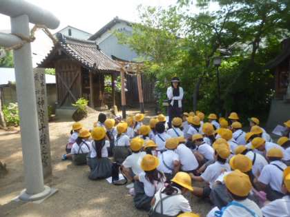 6月14日(金)、2年生が2回目の校区探検に行きました。今回が喜連東のエリアで、喜連第一公園や神社を見てまわりました。とても暑く、移動距離も長い中、よく頑張りました!