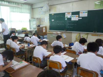 4年生の公開授業の様子です。2クラスを3つに分けて、算数の授業を行っていました。□を使って式をたて、その□を求めるためにどうしたらよいかを考えていました。いろいろな考えを児童同士で伝え合っていました!