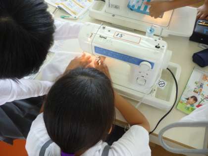 今日から6年生の家庭科の学習は、ミシンを使って雑巾を作ります。