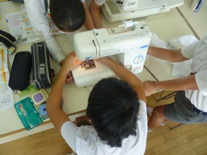 まずは教科書を見返し、5年生で学習したミシンの使い方を振り返りました。振り返った後に、グループのみんなで協力し合ったり助け合ったりしながら上手に雑巾を作っていました。1〜5年生の下級生に、6年生から雑巾をプレゼントします。気持ちを込めて作っていきましょうね。