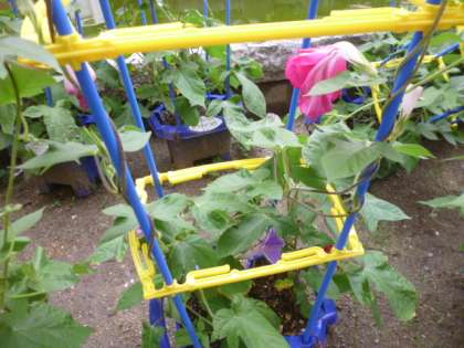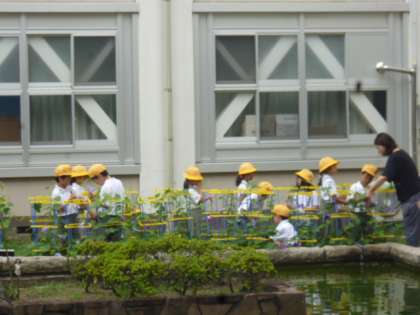 1年生が朝顔の観察をしていました。少しずつ花も開きはじめています。つるの成長に子どもたちもびっくりでした!