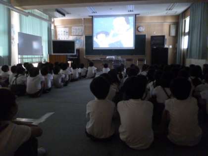 中学年の様子です。「しんちゃんのさんりんちゃ」というビデオを視聴しました。