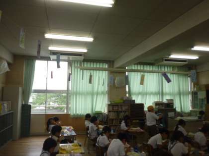 1年2組の教室です。同じように、きれいに短冊が飾られていました!