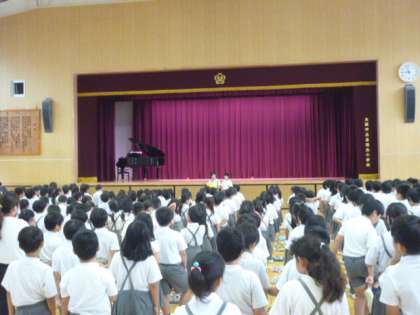 7月19日(金)、1学期終業式を行いました。児童代表のあいさつは5年生で、1学期に頑張ったこと、これから頑張りたいことをハキハキと発表していました。長い夏休みです。事件・事故に巻き込まれないように、安全で楽しい夏休みにしていただければと思います。