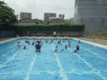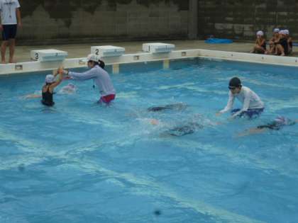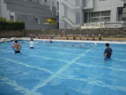 7月23日(火)、プール開放の様子です。昨日が雨で中止だったため、夏休みはじめてのプール開放です。とても晴天に恵まれ、楽しくプールに入ることができました。写真は低学年の様子です。